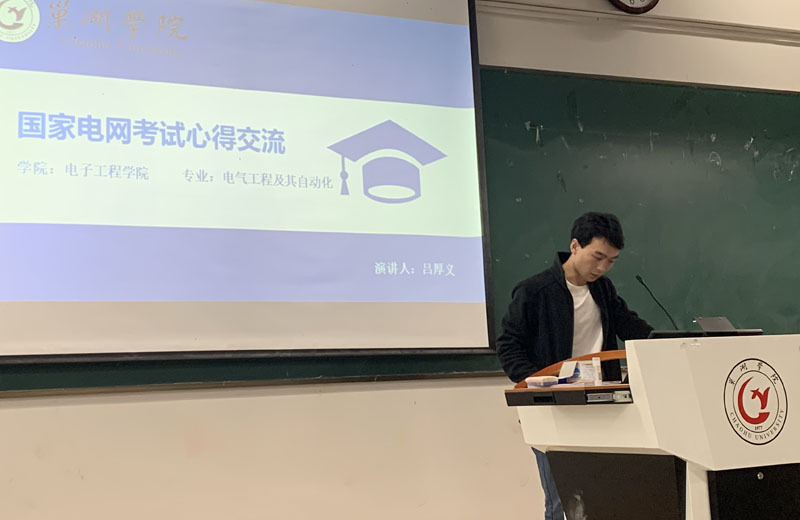 馬龍從專業特點出發,給出了自己對于專業學習的看法,并推薦教輔資料。李志偉告訴同學們在學科復習方面要依據考試大綱,以免走彎路,同時告訴大家樹立起考研信心,永不言棄。胡華則向同學們分享了自己考研調劑的波折過程,她說:“考研就是在考驗人的心態,不到最后一秒都不要放棄。”呂厚義詳細和大家分享了國家電網的報考難度和報錄比,建議盡早規劃好復習備考方案,并推薦了相關資料。