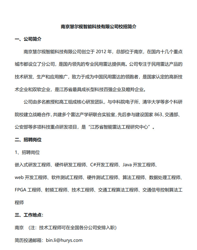 南京慧爾視智能科技有限公司招聘信息