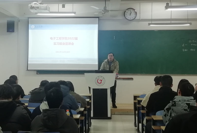 2021年12月28日下午,電子工程學院在慎思樓中401舉辦實習與就業宣講會,會議由王正創老師主持,畢業班輔導員和學生參加了宣講會。