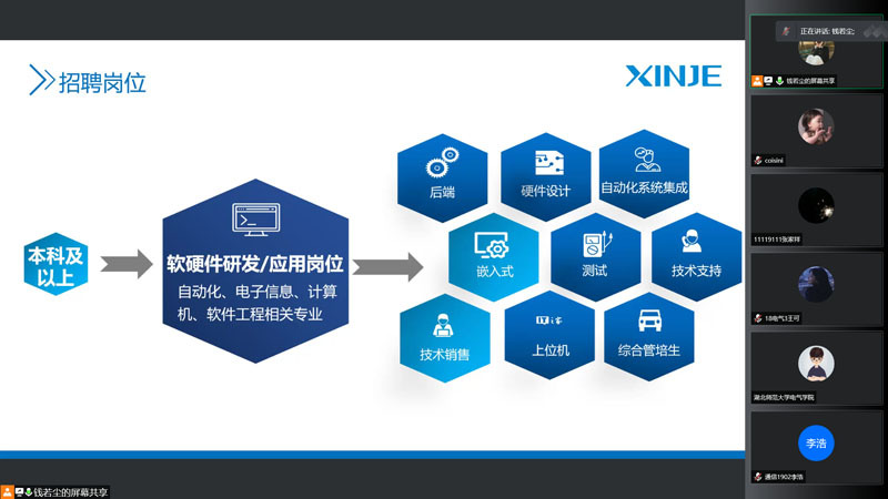 為了更好地拓寬畢業(yè)生就業(yè)渠道,幫助困難畢業(yè)生就業(yè)。5月10日下午,電子工程學(xué)院攜手無(wú)錫信捷電氣股份有限公司共同舉辦2022屆春季校園線上招聘宣講會(huì),本次宣講會(huì)由無(wú)錫信捷電氣股份有限公司招聘經(jīng)理錢(qián)若塵主持,電子工程學(xué)院2022屆畢業(yè)生參會(huì)。