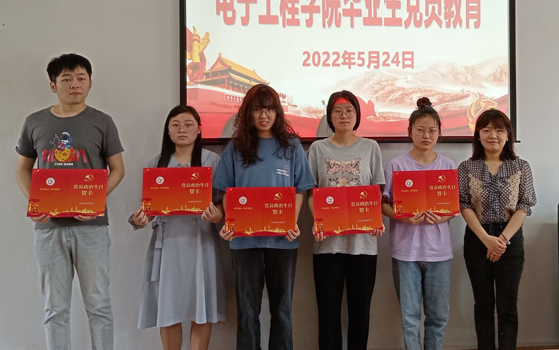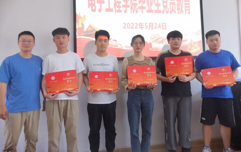 為進一步激勵2022屆畢業生黨員堅定理想信念,提升黨性修養,以良好的精神風貌踏入新征程。5月24日上午,電子工程學院于篤行樓二樓會議室召開2022屆畢業生黨員專題教育。會議由學院黨委副書記孔鯤鵬主持,學生黨支部書記孫一帆、卓瀟、涂靜,組織員王靜與會,全體畢業生黨員參加。