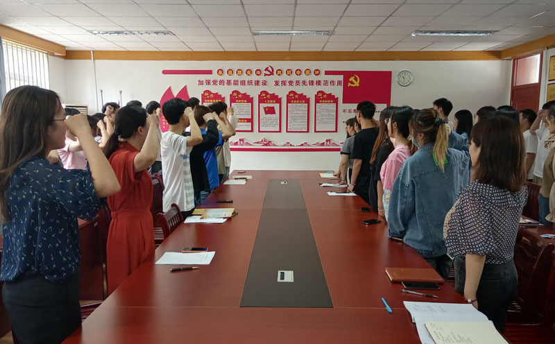 最后,全體黨員一起重溫入黨誓詞,接受一次深刻的黨性教育。莊嚴的宣誓,提醒著畢業生黨員要守初心、擔責任,走好新時代每個人自己的長征路。