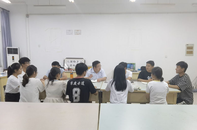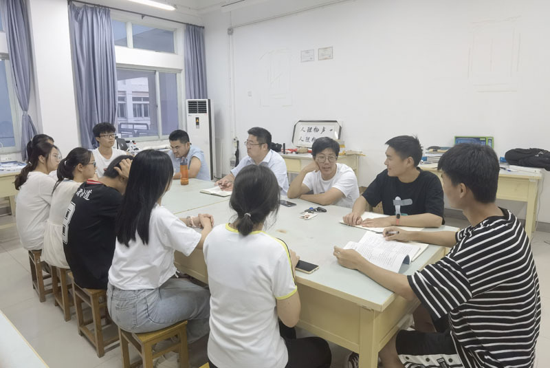 隨后任明陽對于暑期培訓進行了大致分工,對安徽省師范生技能競賽的比賽內容進行簡要概述。杜成名對同學們冒著酷暑積極參賽的這種頑強刻苦的學習精神予以肯定,希望各位同學根據既定的暑期培訓的計劃,按時完成計劃進度,并向各位同學提出建議,以小組為單位互相監督,共同進步,有不懂的問題也可以互相討論,共同解決。徐健勉勵同學們要利用好暑假,盡快學會一些工具軟件的使用方法,以充分備賽。與會同學就工具軟件的學習與幾位老師進行了交流討論。