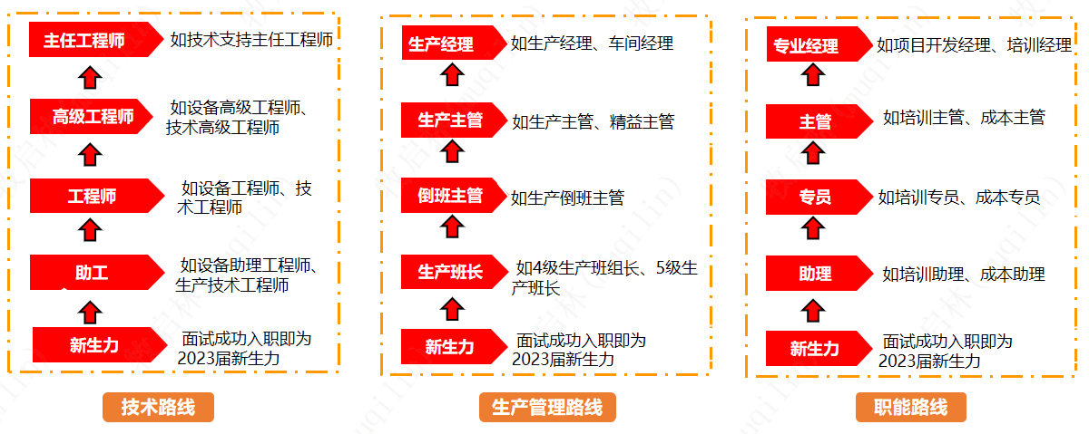 公司秉承“以人為本”的用人理念,能者上、庸者下、平者讓,內部管理崗位實行競聘上崗制,建立員工職業發展三重通道(技術路線、生產管理路線、職能路線),為優秀畢業生提供廣闊的職業發展平臺。