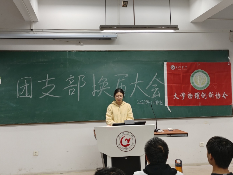 2022年11月10日晚8點,巢湖學院大學物理創新協會于慎思樓中402教室舉行團支部換屆大會,協會指導老師笪誠教授、協會全體團員參加。