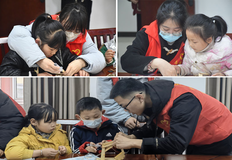 “今天我教兩個小朋友合作用一份材料包完成拼搭任務,過程中提升了小朋友們的團隊合作能力和動手實踐能力,自己通過志愿服務也獲得了成長?!秉h員學生孟浩然說。