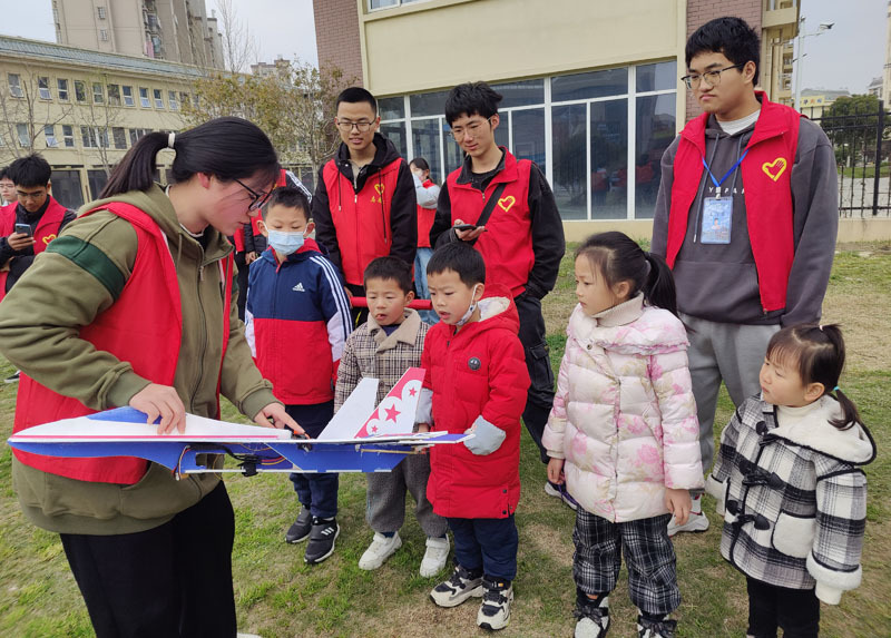 活動現場,黨員志愿者們參與了“關注自我 向陽生長”的心理健康輔導,分享了心理健康小故事,幫助小朋友們樹立積極健康的心態,勇敢面對生活中的困難。并充分發揮自身專業特長和優勢,和小朋友們一起進行手工拼圖的制作,耐心地幫助他們解決困難,激發了孩子們的想象力,還培養了孩子們的實踐能力。此外,黨員志愿者們向小朋友們講解了航模知識以及飛機飛行原理,激發了孩子們的濃厚興趣。最后進行了航模飛行表演活動,進一步讓孩子們感受到科技的魅力。