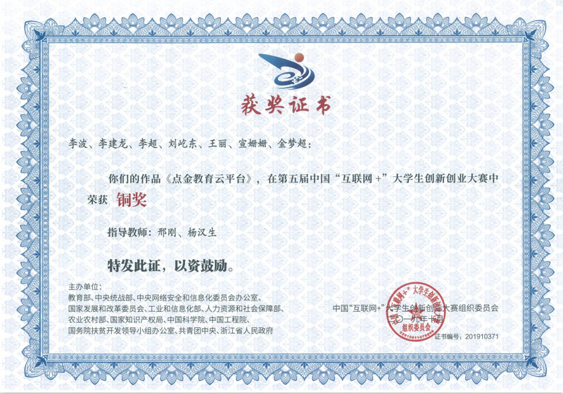 學生獲第五屆中國“互聯網+”比賽全國銅獎