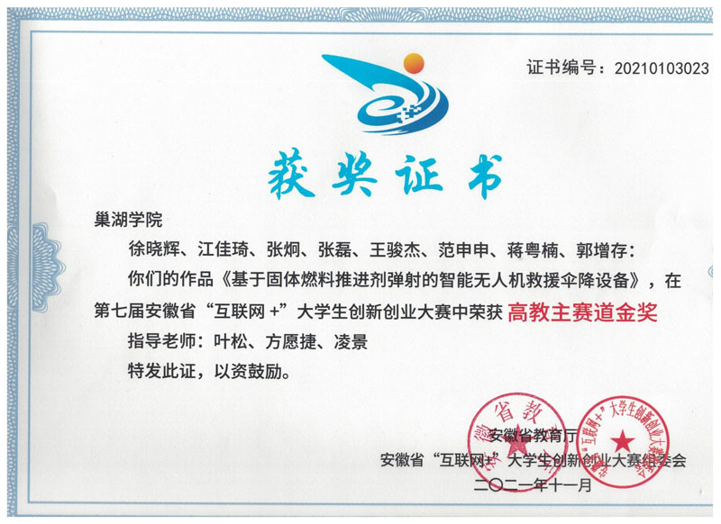 學生獲第七屆中國“互聯網+”比賽安徽省金獎