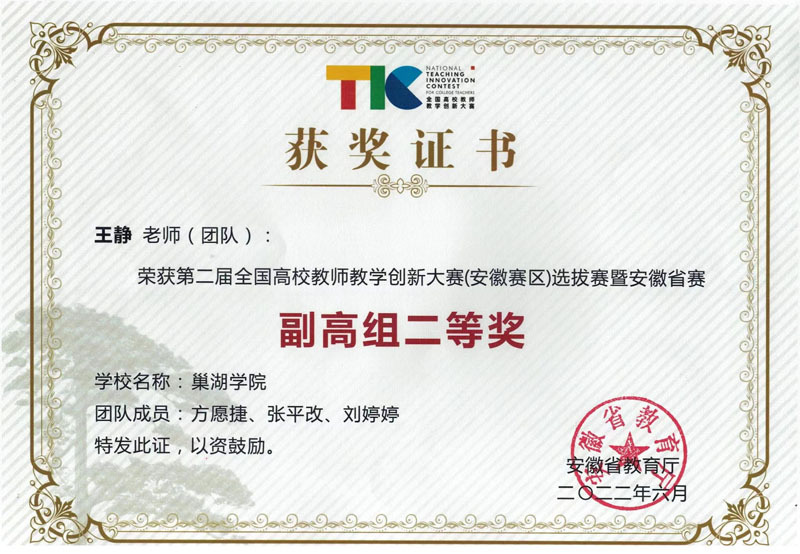 教師團隊獲高校教師教學創新大賽安徽省副高組二等獎