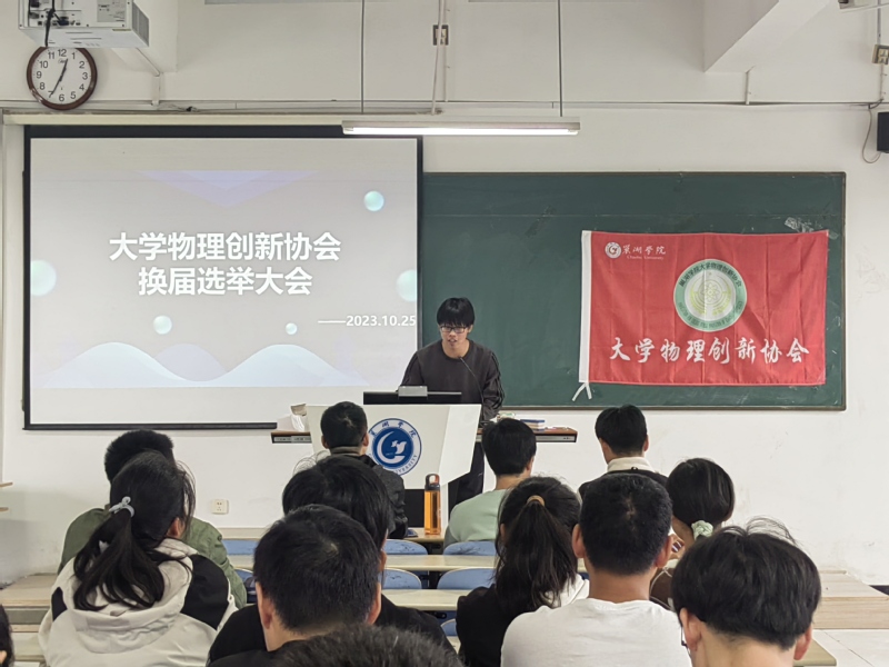 根據(jù)校團(tuán)委和電子工程學(xué)院黨委的部署,2023年10月25日中午,大學(xué)物理創(chuàng)新協(xié)會(huì)在慎思樓北301教室舉辦了社團(tuán)換屆大會(huì)。協(xié)會(huì)各部門(mén)干事以及會(huì)員近50人參與,協(xié)會(huì)指導(dǎo)老師笪誠(chéng)教授和徐健博士到會(huì)指導(dǎo),會(huì)議由軒家健和李環(huán)月共同主持。