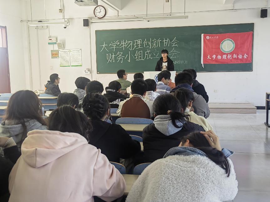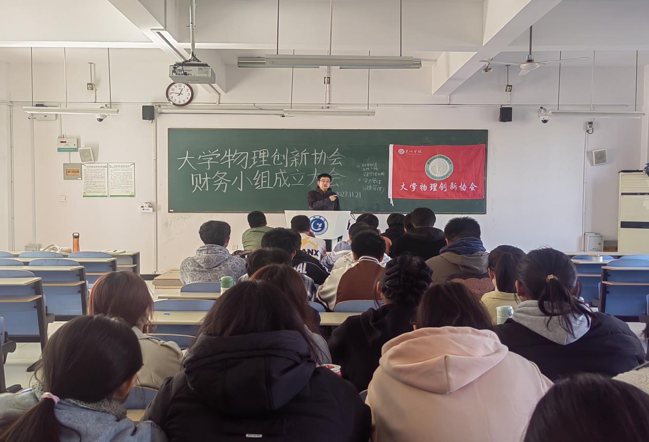 為保證協會財務工作的連續性,根據校學生社團發展中心的要求,2023年11月21日中午,大學物理創新協會在慎思樓北302室舉行新一屆財務小組成立大會。會議由大學物理創新協會會長軒家健主持,協會指導老師笪誠教授到會指導。