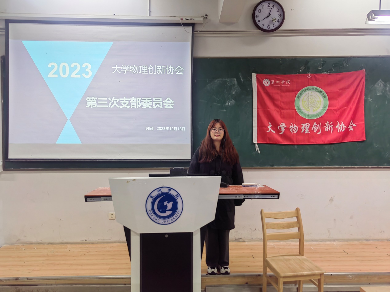 大學物理創新協會團支部于2023年12月14日晚上八點在慎思樓中101教室召開支部委員會。會議由協會團支部書記李環月主持,旨在引導各位委員踐行社會主義核心價值觀,為實現中國特色社會主義事業不懈奮斗。