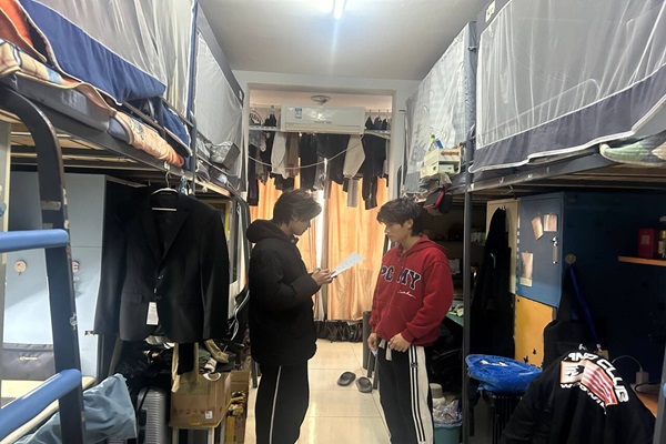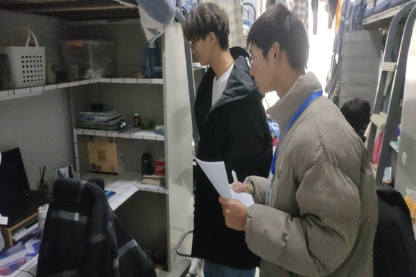 活動伊始,生活權益部全體人員及工作人員在會議室集合,負責人按照分配好的檢查小組對各自的小組成員員介紹檢查的注意事項和評分標準,分配好各成員的工作。各組負責人帶領各組成員到分配的宿舍進行檢查。到達宿舍場地,各組工作人員提前通知宿舍成員將要進行宿舍檢查,并要求他們做好準備進行解說。進入各宿舍后,宿舍成員對自己宿舍的介紹,與此同時,工作人員對宿舍進行全方位檢查,并按照檢查標準對進行評分,記錄評分結果。最后,工作人員匯總評分結果并選出獲勝宿舍。