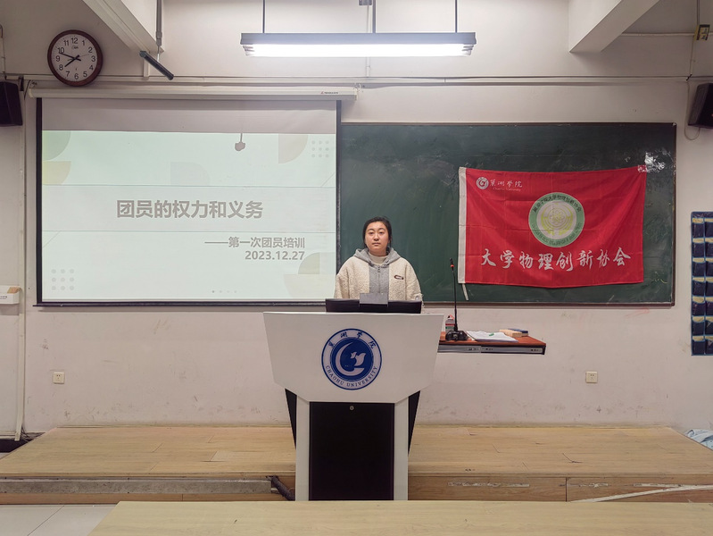 為了弘揚社會主義核心價值觀,提高團員的政治覺悟和組織紀律性,12月27日,大學物理創新協會在慎思樓中102教室舉行第一次團員培訓。本次培訓會由團支部李莎同學主持。