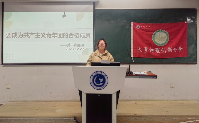 為進一步弘揚共產主義理念,加強大學生的青年團隊建設和思想道德教育,12月27日,大學物理創新協會在慎思樓中102教室舉辦了第一次團課活動。本次團課由大學物理創新協會團支部書記李環月主持,團課主題是“成為共產主義青年團的合格成員”。
