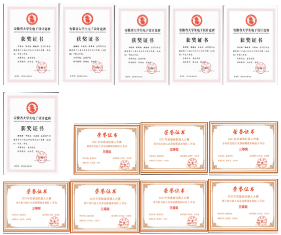 過去的一年里,在學校的大力支持以及指導老師的指導下,電子創(chuàng)新設計協(xié)會成員憑借自身的努力在全國大學生電子設計競賽、全國大學生智能車競賽和安徽省機器人大賽中取得了如下成果:國家一等獎一項,國家二等獎四項,安徽省一等獎八項,安徽省二等獎十二項,安徽省三等獎十七項。在比賽過程中,社員們有過挫折,有過遺憾,有苦有累,有哭有笑,但更多的是參賽過程中收獲的知識、友誼及感悟。