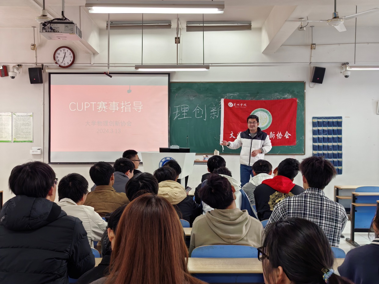 2024年3月13日中午,大學(xué)物理創(chuàng)新協(xié)會(huì)在慎思樓中102教室舉行了CUPT賽事集中指導(dǎo),大會(huì)由協(xié)會(huì)指導(dǎo)教師杜成名主持,指導(dǎo)教師潘月、蔣蕓和全體參賽同學(xué)參會(huì)。