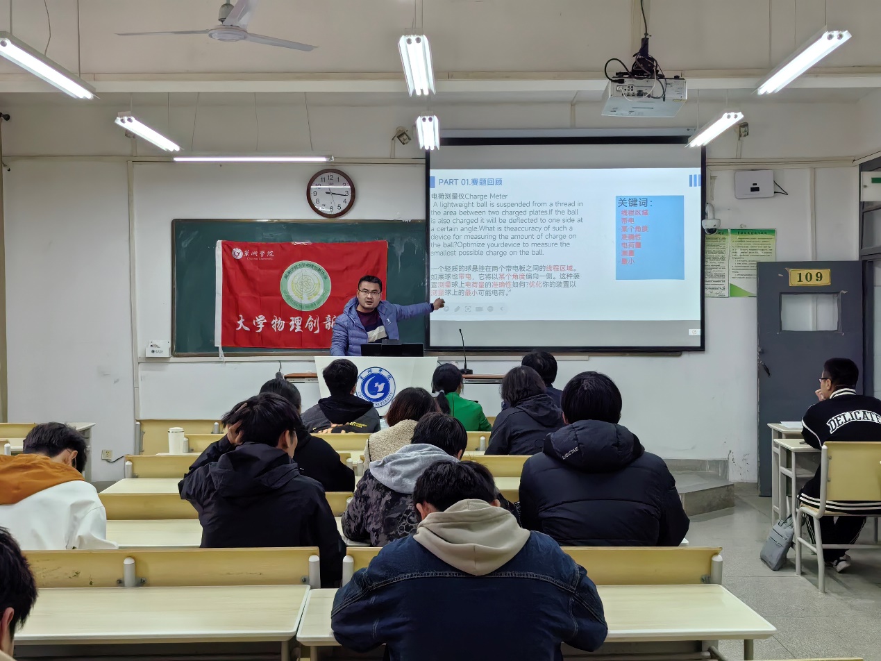 為了提高學生的科學實踐能力和探索求知能力,2024年3月20日,電子工程學院大學物理創新協會在博學樓109教室舉辦了2024年安徽省大學生物理學術競賽(CUPT)校內選拔賽。本次比賽由會長軒家健主持,協會指導老師杜成名、朱愛國、徐健、李永春、蔣蕓、潘月、唐瑞華、何鵬老師擔任本次比賽評委。