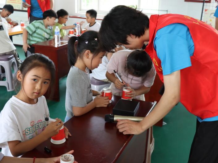 科學素養是衡量一個國家公民素質的重要指標,對于發展新質生產力具有不可替代的關鍵作用。新質生產力的核心在于創新,趣味科普課堂能夠激發青少年的創新思維,點亮科技創新夢。實踐團來到了郎溪縣十字鎮兒童服務站,為20余名兒童上了一堂生動富有趣味的科普課程。主講人劉豪以其生動有趣的講解方式,帶領小朋友們走進了一個充滿奇妙與驚喜的科學世界。他逐一介紹了“無影空氣炮”、“紙杯投影”以及“平均分水”這三個既有趣又蘊含科學原理的實驗,并鼓勵小朋友們親自動手嘗試,體驗科學的魅力。