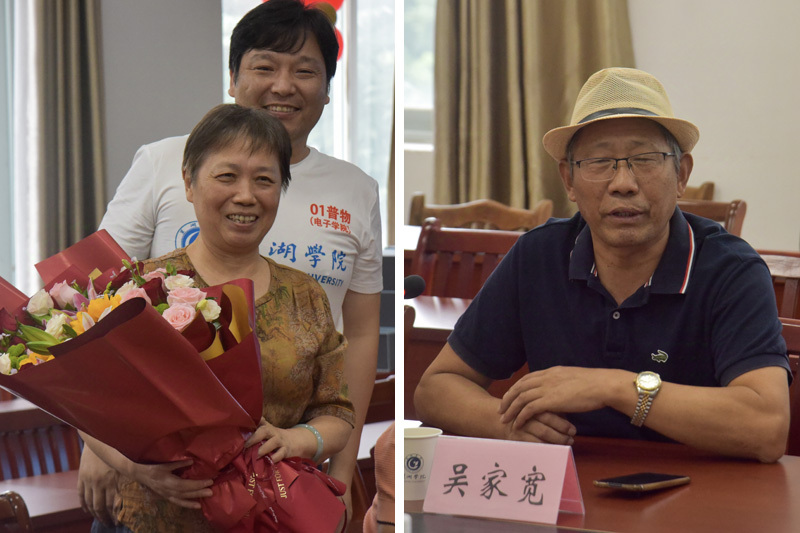 下午,校友們先后來到電子工程學院、機械工程學院,召開主題為“畢業二十載 感恩再相聚”的校友師生座談會。校友們邀請了原物理系的領導和老師一起參加,并獻花表達對老師們的感激,座談會由校友代表王明發主持。