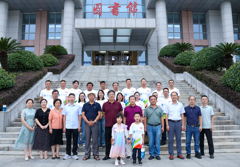 師生們來到學校圖書館門前,一同合影留念。