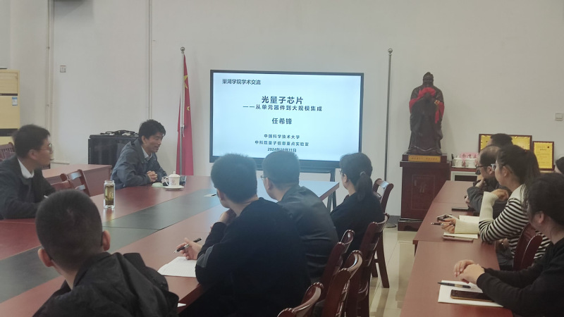 2024年10月31日,國家自然科學(xué)基金杰出青年項(xiàng)目獲得者、教育部青年長江學(xué)者、中國科學(xué)技術(shù)大學(xué)任希鋒教授應(yīng)邀在電子工程學(xué)院會(huì)議室做了“光量子芯片——從單元器件到大規(guī)模集成”的精彩報(bào)告,副院長方愿捷主持了此次報(bào)告會(huì),學(xué)院部分教師參加了此次學(xué)術(shù)報(bào)告。