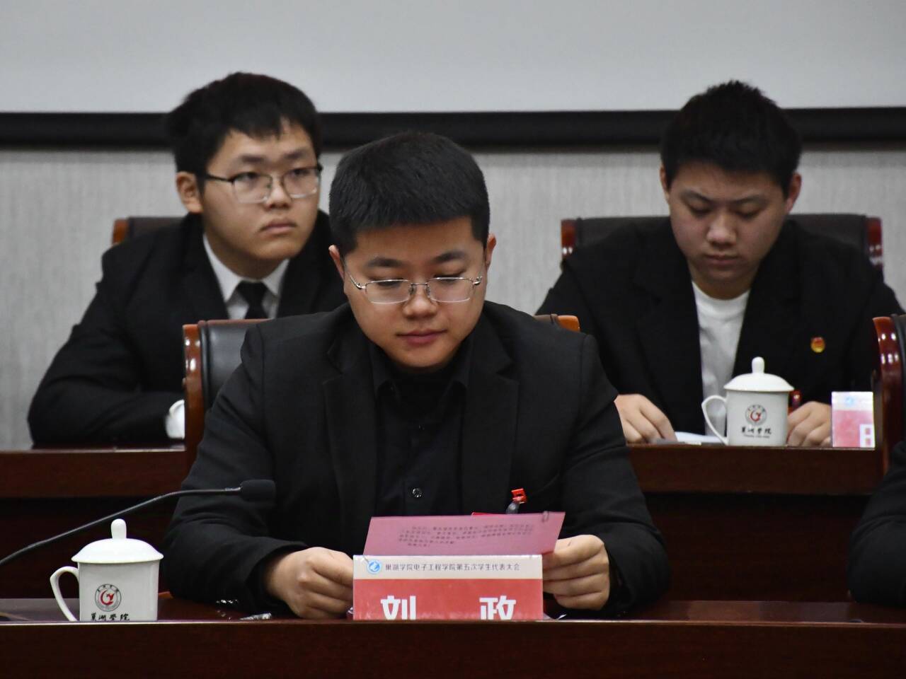 劉政對大會的成功舉辦以及第五屆學生委員會委員和主席團成員的當選表示誠摯的祝賀,并提出青年人要堅定信念,要積極創新,要強化擔當。愿各位學子以青春為筆、夢想為墨,繪時代畫卷;以拼搏為舟、奮斗為槳,航人生海洋;以激情為歌、勇氣為弦,奏華彩樂章。