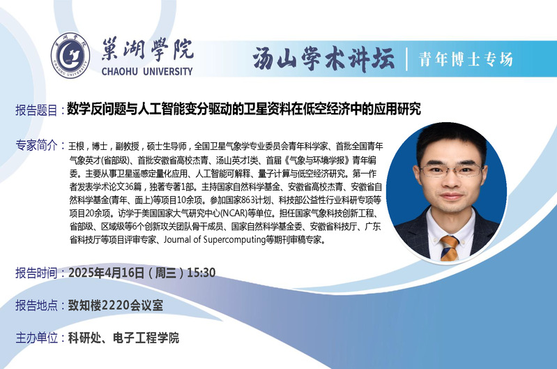 湯山學術講壇青年博士專場:(4月16日:電子工程學院王根博士講座)