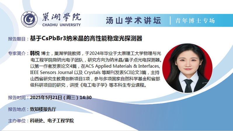 湯山學術講壇青年博士專場第10講:(5月21日:電子工程學院韓悅博士講座)