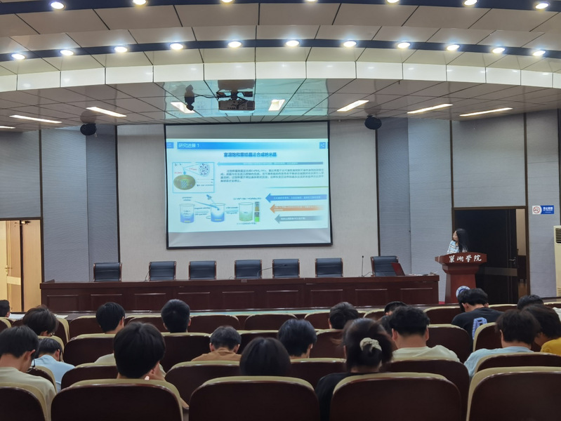 韓博士結合自身在納米晶/量子點光電探測器方面的研究經歷,以《基于CsPbBr3納米晶的高性能穩定光探測器》為主題,深入淺出地闡釋了全無機鈣鈦礦CsPbBr3納米晶基光電探測器的性能優化研究思路,采用了鈍化缺陷、促進載流子傳輸、拓寬光譜響應范圍、優選電極等方面協同研究方法,獲得了高性能、寬光譜、低成本的穩定光電探測器研究成果,為柔性電子器件的應用提供了新思路,為解決傳統光探測器的難題提供了新途徑。報告會后,與會師生同韓博士就科學研究細節、鈣鈦礦穩定性及其產業化應用等方面展開了熱烈的互動交流。