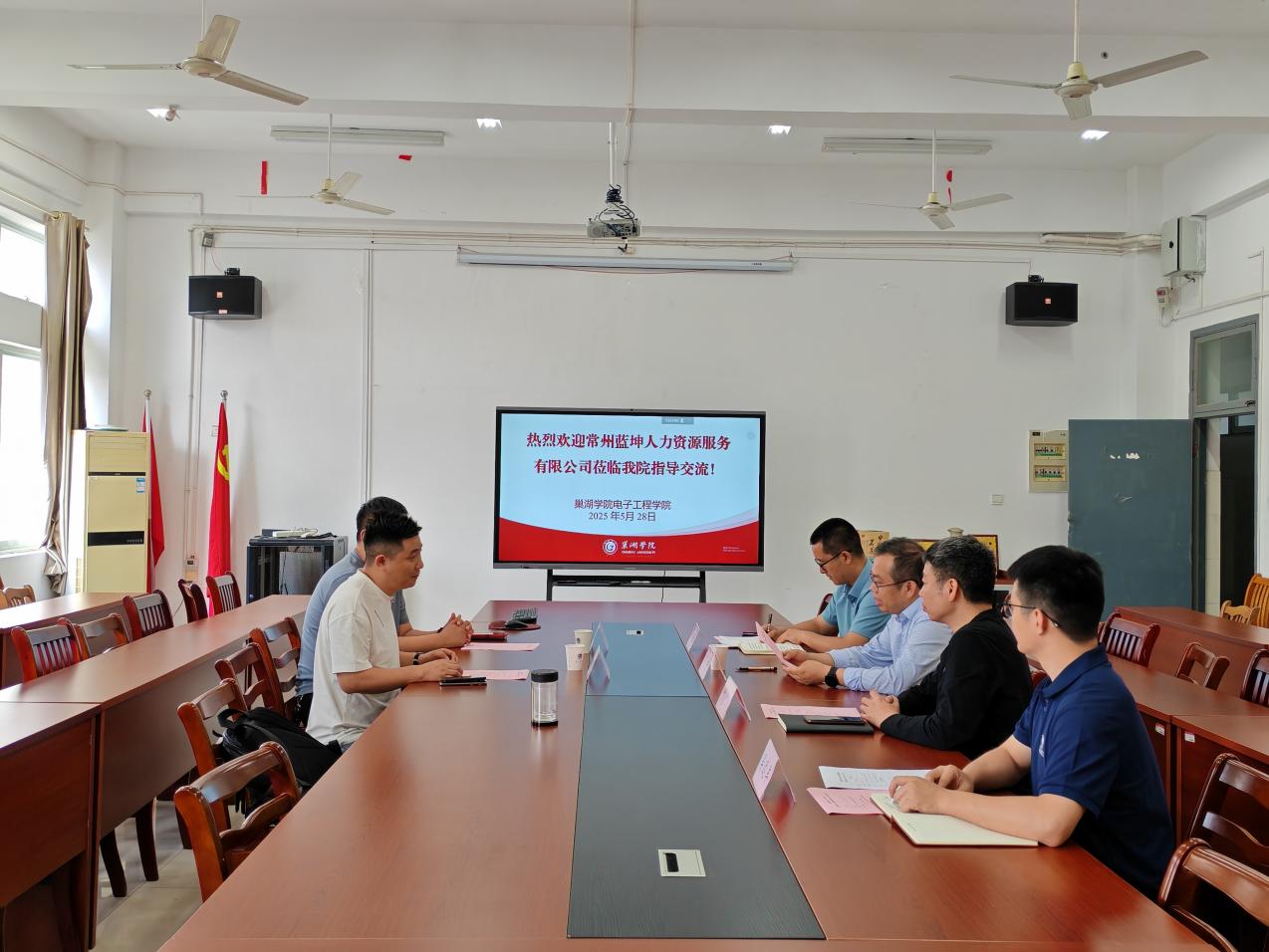 為進一步深化產教融合,2025年5月28日下午,電子工程學院舉辦常州藍坤人力資源服務有限公司校企合作洽談會。校黨委委員、副校長周祥出席會議。