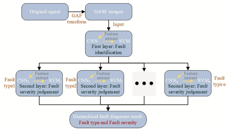 壓阻式壓力傳感器應用范圍日趨廣泛且工作環境復雜,現代社會對其可靠性的要求越來越高。然而,由于材料特性和工作原理,壓阻式壓力傳感器中不同內部組件退化所導致的故障表現出高度相似性,主要體現在傳感器輸出靈敏度系數和信號非線性失真的變化上。這給壓阻式壓力傳感器的故障診斷帶來了一些挑戰,包括如何有效提取能夠表征不同故障的特征、如何準確識別故障以及如何判斷相應故障的嚴重程度。為解決上述關鍵問題,該文提出了一種基于格拉姆角場(GAFs)和卷積神經網絡(CNN)融合支持向量機(SVM)的分層故障診斷(HFD)方法。首先,根據功能區域定義壓阻式壓力傳感器的故障類型。其次,采用GAF對傳感器的原始輸出信號進行編碼,解決原始信號中故障特征較弱的問題。然后使用CNN提取由GAF轉換得到的格拉姆角求和場(GASF)圖像的特征。此外,將SVM作為與CNN展平層相連的分類器。最后,提出了一種HFD架構來實現故障識別和故障嚴重程度判斷。實驗結果表明,提出的方法能夠有效提取特征,準確識別壓力傳感器的不同故障,并判斷故障的嚴重程度。故障識別準確率達到99.34%,嚴重程度判斷最高準確率達到98%。