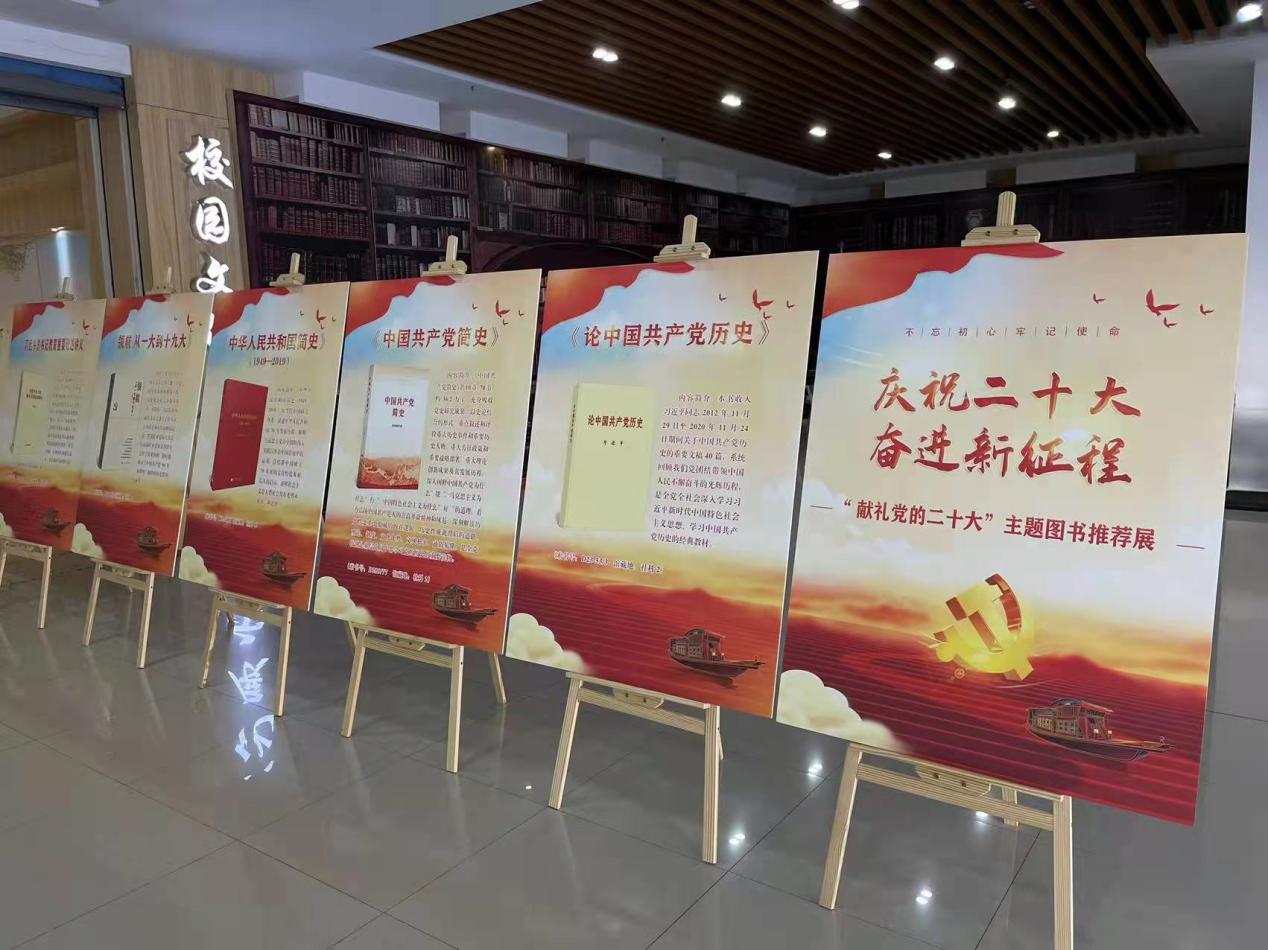 為慶祝黨的第二十次全國代表大會勝利召開,圖書館在一樓和二樓大廳開展“慶祝二十大奮進(jìn)新征程——獻(xiàn)禮黨的二十大”主題圖書推薦展活動。