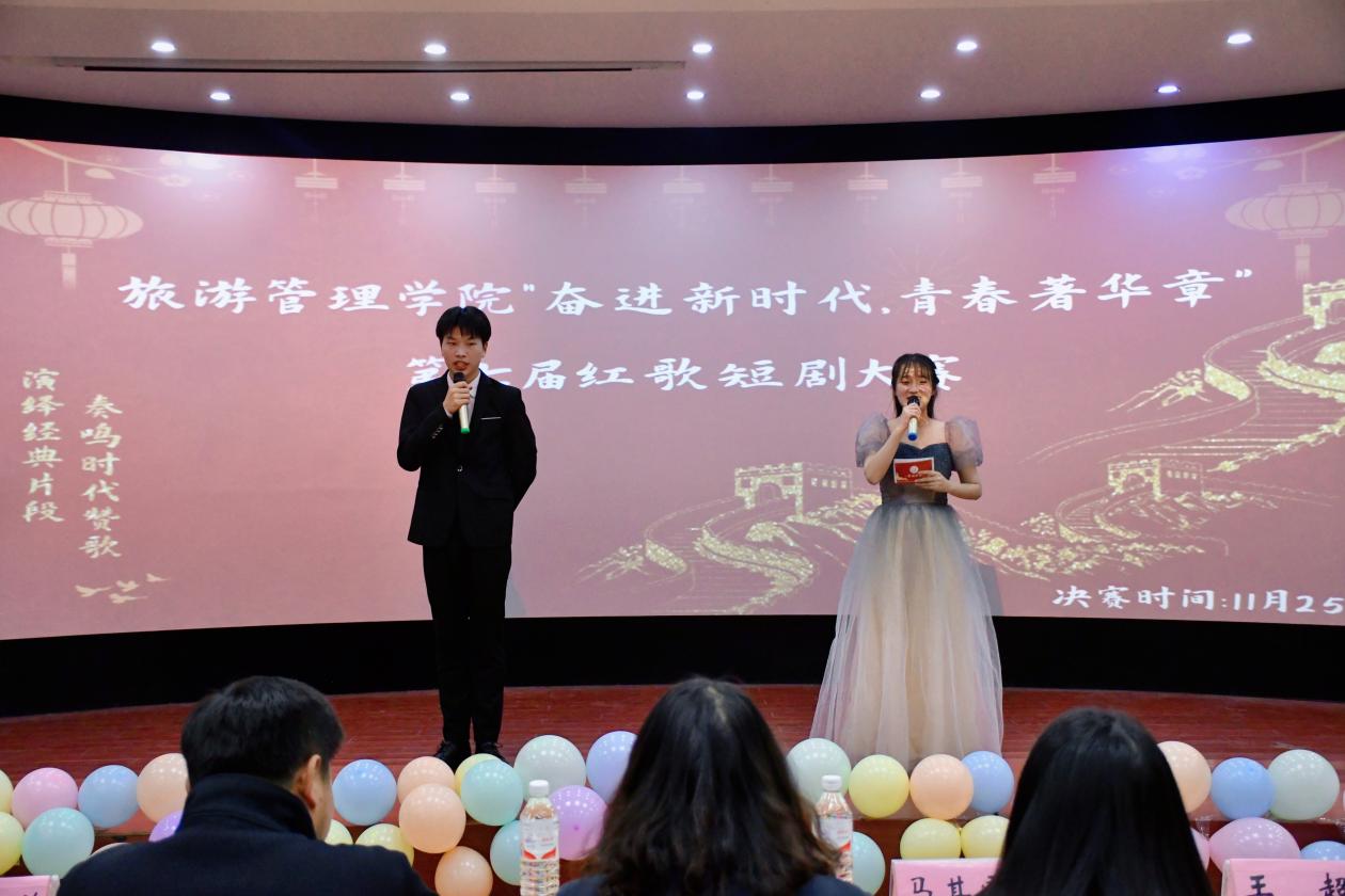 在學校上下掀起學習貫徹黨的二十大精神熱潮之際,11月25日晚上,旅游管理學院在博學樓3D導游模擬教室舉行“奮進新時代青春著華章”第七屆紅歌短劇大賽,引導青年學生堅定不移聽黨話、感黨恩、跟黨走。