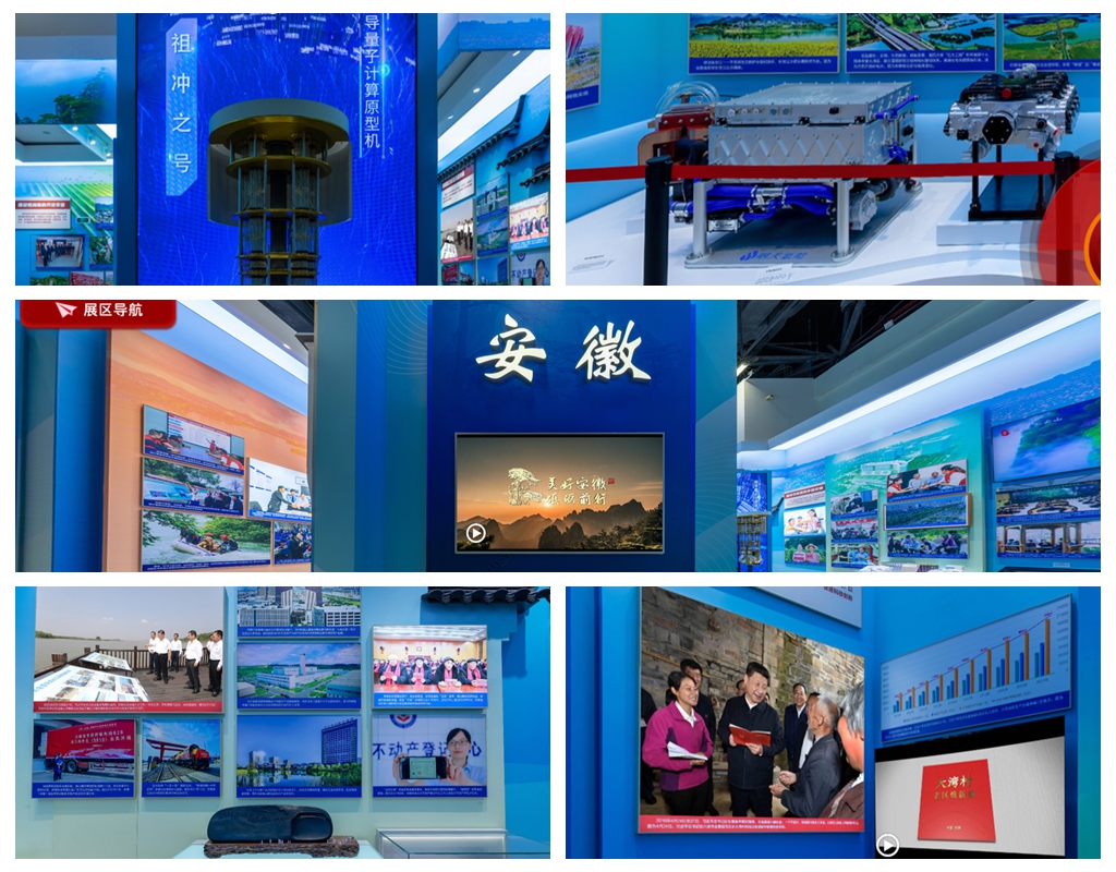 在安徽展區,展覽貫穿“學習貫徹習近平總書記重要講話指示精神”這條主線,聚焦“非凡十年、皖美之變”,綜合運用圖表圖片、電子畫屏、燈箱、模型實物、多媒體互動等多種形式,圍繞“建設經濟強的創新安徽、建設格局新的共進安徽、建設環境優的美麗安徽、建設活力足的開放安徽、建設百姓富的幸福安徽”五個部分全面展開。廣大師生深切感受到家鄉各行各業、各個地方的改革亮點和發展成果,為各項工作取得的歷史性新成就新進展而感到自豪。