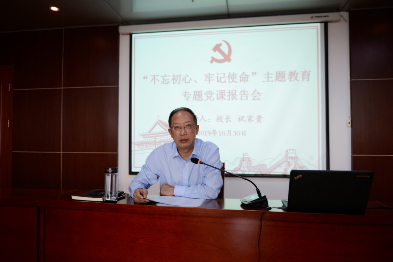 為貫徹落實中央和省委“不忘初心、牢記使命”主題教育精神,10月30日下午,校長祝家貴在第二會議室作題為“堅守初心找差距 牢記使命抓落實”的專題黨課報告,發規處、財務處、工商學院教工黨員及處級以上干部聆聽了報告。