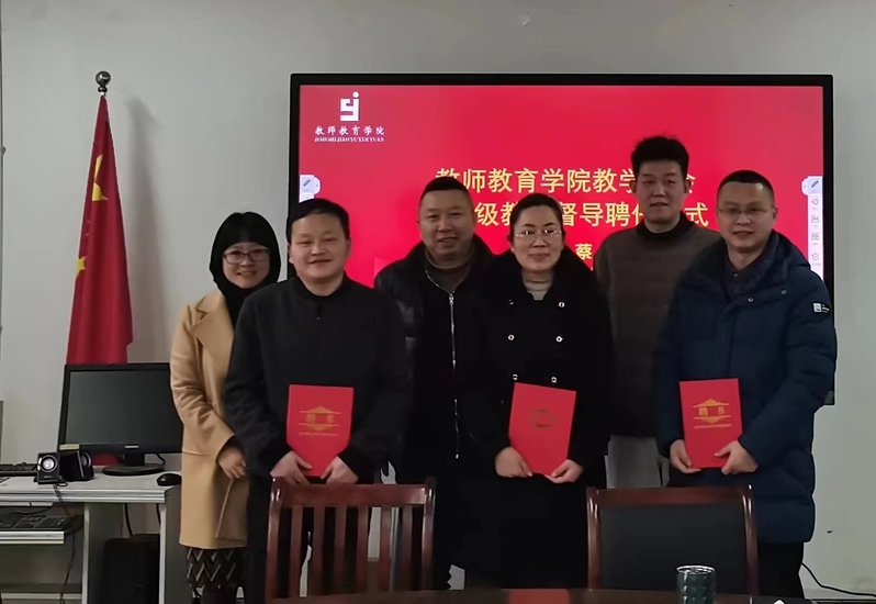 會議第二議程是舉行院級督導聘任儀式。本屆督導隊伍中,學院有校級督導1名和院級督導3名,分別是馬磊、信中貴、柳泳、朱平四位教師。參會人員首先對四位老師的當選表示熱烈的祝賀。隨后根據學校發規處有關文件,大家集體討論并修訂了《教師教育學院院級教學督導工作條例》(院字【2022】7號),制定了《教師教育學院院級教學督導工作條例(修訂)》。鄭艷對新一屆教學督導提出三點希望,一要認真履責。督導隊伍是質量保障和監控體系中重要一環,希望各位督導能夠認真履責,擔負起使命感和責任感,為學院發展貢獻出自己的一份力量;二是加強學習。學習學校相關教學管理的文件和制度,將督導工作與教科研工作結合起來;三是協同合作。平時工作中,要積極與學院質量監控體系的其他隊伍開展合作,信息交流要暢通,如要加強與教學信息員、教秘辦、院教指委、院領導班子等隊伍溝通,聽評課及時反饋,對質量監控形成有效閉環,為教師教育學院質量文化建設建言獻策。