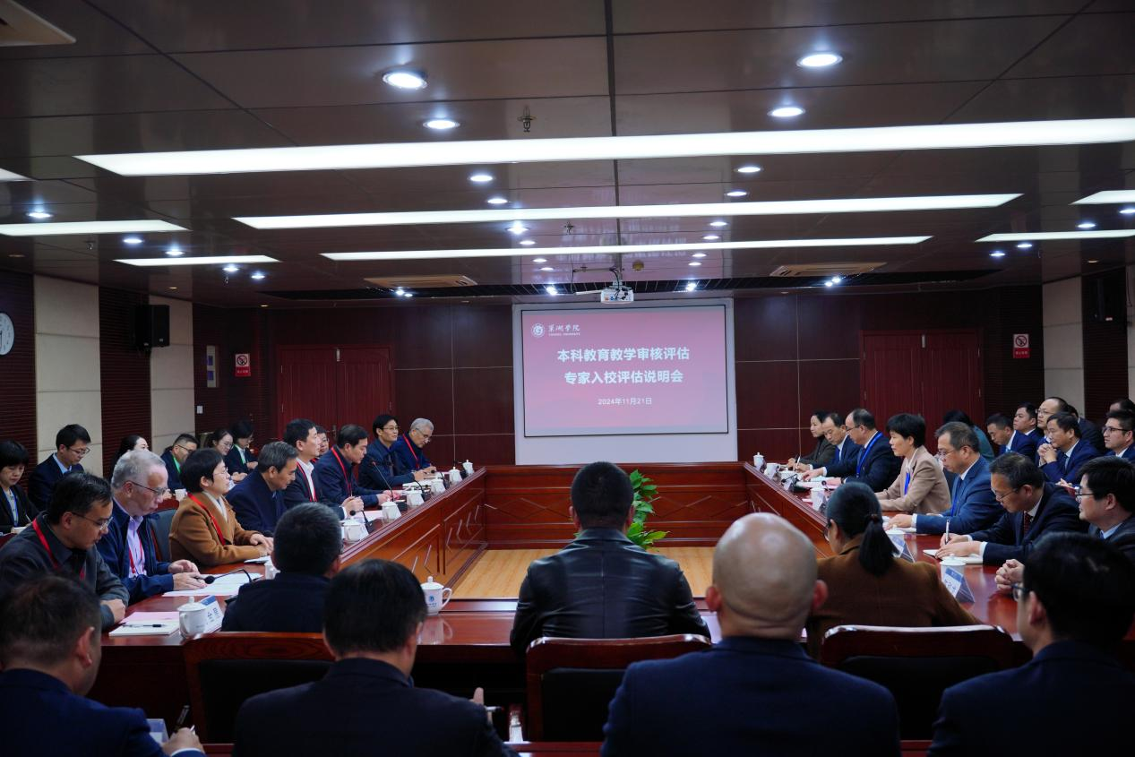 11月21日上午,本科教育教學審核評估專家組入校評估說明會在巢湖學院第二會議室召開。專家組全體成員,巢湖學院領導班子成員、各職能部門主要負責人、各二級學院黨政主要負責人、專家組聯絡員參加會議。黃顯懷主持會議。會上,叢玉豪對本次入校評估考察目的、內容、工作安排以及前期線上評估基本情況作了介紹說明。他指出,專家組入??疾斓闹饕蝿帐菍€上評估存在的問題進行重點考察求證,最終形成對學校本科教育教學工作全面、客觀、準確、公正的評價。