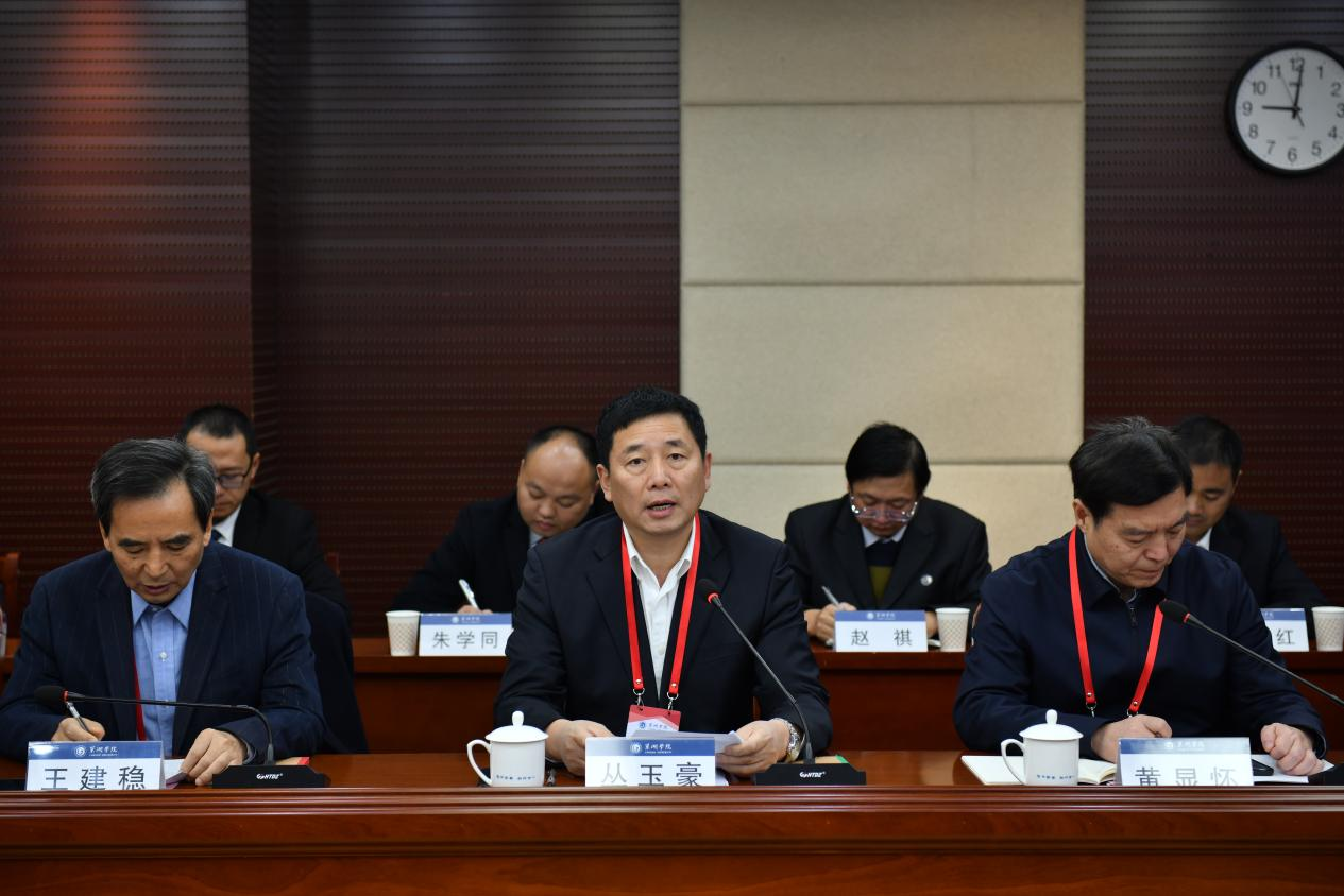 叢玉豪首先代表專家組交流了審核評估的總體情況。專家組一致認為,巢湖學院黨政領導班子團結和諧、奮發有為,聚精會神發展事業;全體教職員工精氣神好、干勁足人心齊;學校事業發展目標明確、思路清晰;尤其是近年來快速發展,育人和辦學成效顯著,師生獲得感強。作為地方應用型大學,巢湖學院堅持以習近平新時代中國特色社會主義思想為指導,圍繞立德樹人根本任務,牢牢把握應用型人才培養和辦好地方性應用型高水平大學的時代使命,緊緊圍繞安徽省產業結構轉型升級,以及服務環巢湖區經濟社會發展,深化教育教學改革,開展應用型人才培養,在服務地方中求支持、謀發展,不斷書寫特色發展的新篇章。