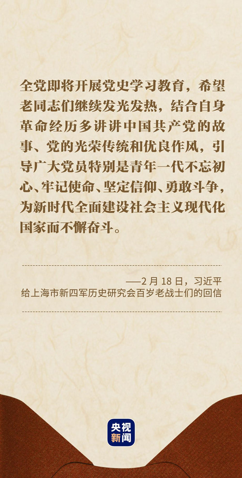 習近平總書記在回信中說:“你們青年時代就投身革命,為黨和人民事業英勇奮斗,期頤之年仍心系黨史宣傳教育,深厚的愛黨之情令人感佩。”
