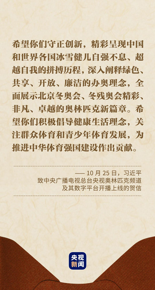 從中央廣播電視總臺央視奧林匹克頻道及其數字平臺開播上線到中國人民對外廣播事業創建80周年,從首屆中國網絡文明大會到第130屆中國進出口商品交易會,從2021年世界互聯網大會烏鎮峰會到首屆北斗規模應用國際峰會……總書記的一封封賀信,站位高遠、內涵豐富,意義重大、字字千鈞,體現了人民領袖對各行各業的親切關懷和殷切期望,擘畫了新征程的發展藍圖。