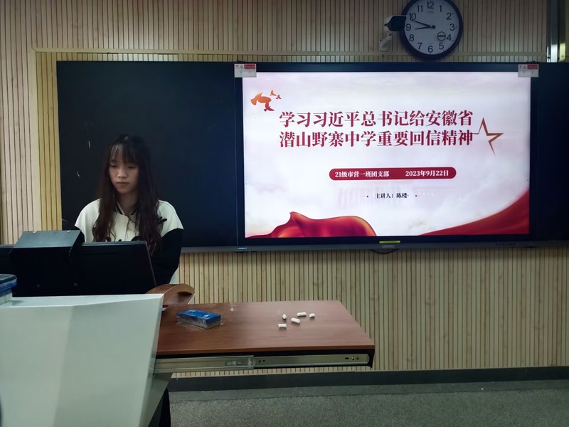 為深入學習貫徹習近平總書記重要回信精神,加強同學們思想政治教育。21級市場營銷專業一班于9月22日上午在博學樓516教室召開學習習近平總書記給安徽省潛山野寨中學重要回信精神本次會議由團支部書記陳樓主持,輔導員許沙指導,21級市場營銷專業一班全體同學參加。