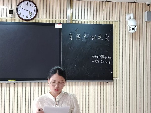 首先,許沙向同學們介紹了本次貧困生評議的具體流程并詳細的講解了貧困生認定規則。接著,她介紹了提交貧困申請的各位同學的具體情況,并由評議小組成員一一傳看申請人的申請資料。隨后,她帶領評審小組成員通過對申請人的申請資料以及在日常生活中的行為表現展開討論,得到最終結果并對其進行排序。最后,她表明,評定結果稍后將會在班級進行公示,同學們核對好各項數據,如結果有錯誤以及有異議的同學可以及時與她聯系或班長進行復查。