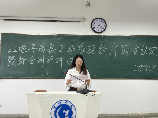 為推動家庭經濟困難認定和綜合測評、獎學金評選工作的正常進行,22級電子商務二班于9月21日下午在博學樓503教室召開評審會議。本次會議由輔導員儲嵐霖主持,22級電子商務二班評議小組全體成員共同參加。