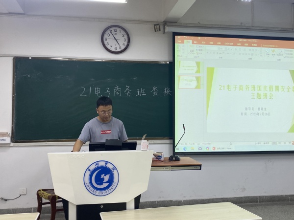為進一步做好中秋和國慶假期學生安全教育工作,巢湖學院工商管理學院21級電子商務班于9月26日下午在博學樓102教室召開國慶假期安全教育主題班會。本次會議由輔導員葛曉龍主持,21級電子商務班全體成員參加。