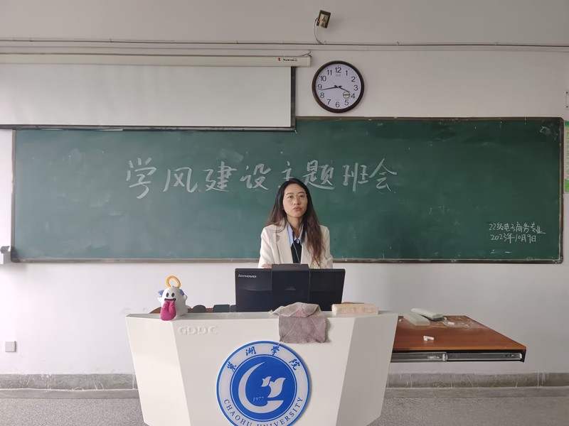 首先,儲嵐霖強調班級學風建設中存在的一系列問題。例如,上課部分同學玩手機,課堂秩序較差等。接著,她表示,學生的首要任務是學習,上課應認真聽講,不做與學習無關的事,是學生所應該具備的基本道德品質。隨后,儲嵐霖提到班級的日常課堂表現將會直接影響個人的評優評先和先進班集體、先進團支部的評選。最后,儲嵐霖希望班級同學能夠時刻督促自己,以積極的態度面對學習,共同為班風建設做出貢獻。