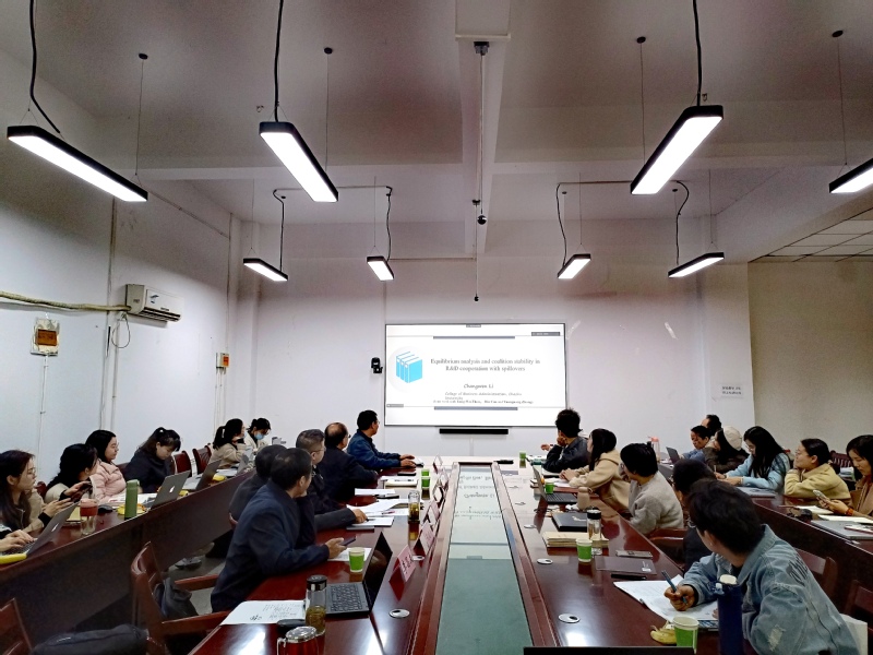 會(huì)議分為上午的主題報(bào)告和下午的專題研討兩個(gè)環(huán)節(jié)。主題報(bào)告環(huán)節(jié),Danny教授介紹了管理中的挑戰(zhàn)與機(jī)遇、商業(yè)全球化、倫理與社會(huì)責(zé)任等概念,進(jìn)而著重介紹了管理學(xué)的最新趨勢(shì)。工商管理學(xué)院吳克平博士以“ESG的淵源及學(xué)科交叉研究”為題,介紹了ESG的淵源、關(guān)于ESG研究論文的發(fā)表情況、ESG與會(huì)計(jì)、財(cái)務(wù)、審計(jì)的交叉研究、ESG研究的挑戰(zhàn)等。工商管理學(xué)院李昌文博士圍繞“研發(fā)合作溢出效應(yīng)的均衡分析與聯(lián)盟穩(wěn)定性”,分析了n家橫向企業(yè)降低成本的研發(fā)合作,研究了兩種具有知識(shí)溢出效應(yīng)的常見(jiàn)合作模式:研發(fā)卡特爾和研發(fā)合資企業(yè)。與會(huì)教師與報(bào)告專家進(jìn)行了深入的交流。下午,與會(huì)教師圍繞會(huì)議主題,開(kāi)展了深入的交流研討。