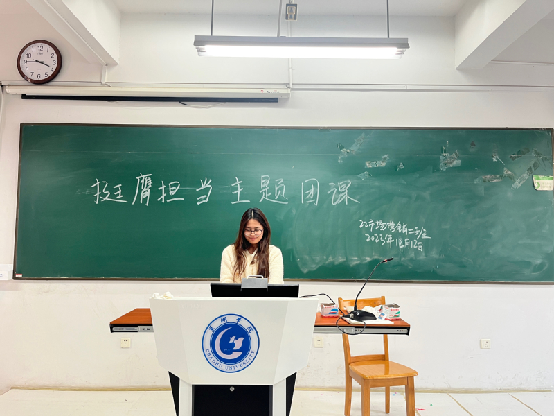 各班組織觀看“以學(xué)鑄魂,挺膺擔(dān)當(dāng)”視頻。隨后舉行了交流座談會,同學(xué)們圍繞“新時代青年為何要挺膺擔(dān)當(dāng)”“新時代青年如何挺膺擔(dān)當(dāng)”兩個問題展開深入交流討論,同學(xué)們從不同角度分享自己的理解,深入探討新時代青年應(yīng)有的責(zé)任與擔(dān)當(dāng)。同時,本次主題團(tuán)課邀請了王威龍、郭允晴兩位優(yōu)秀共青團(tuán)員上臺進(jìn)行經(jīng)驗交流,他們分享了在志愿服務(wù)活動、暑期三下鄉(xiāng)社會實踐掛職等工作心得,表示會不斷在實踐中鍛煉、提高自己能力,同學(xué)們紛紛發(fā)言,現(xiàn)場氣氛熱烈,激起了同學(xué)們的奮斗激情。許沙肯定了同學(xué)們的積極態(tài)度,強(qiáng)調(diào)國家的希望在青年,民族的未來在青年,新時代中國青年處在中華民族發(fā)展的最好時期,既面臨難得的建功立業(yè)人生機(jī)遇,也面臨著“天將降大任于斯人”的時代使命,希望各位同學(xué)們不斷提高本領(lǐng),擔(dān)起時代責(zé)任。