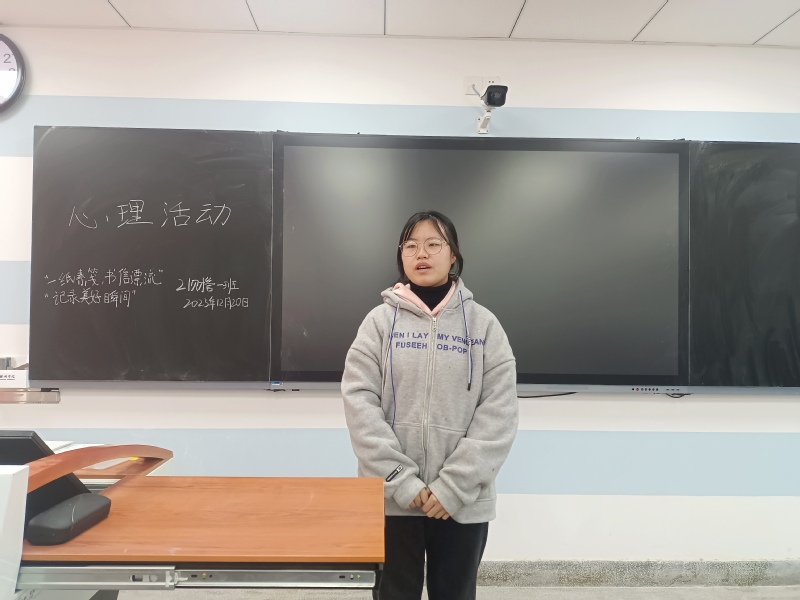 首先,孫芳對本次心理活動進行了簡單的介紹,希望同學們可以踴躍參與進來,一定程度地釋放自己的情緒。接著,她向同學們介紹“一紙素箋,書信漂流”活動,在大二下學期同學們在書信中表達對未來美好的期待與祝愿,在這段時間會返還給大家,與記憶產生一次精彩的碰撞,更好的認識到自己的情感狀態、未來發展方向。隨后,她開展記錄美好瞬間活動,希望同學們可以把平凡和美好的生活瞬間記錄和定格下來,觀察和捕捉平日的精彩小瞬間,珍藏美好記憶。最后,她對本次會議做出總結,本次本次開展心理的活動可以一定程度的釋放出心中的壓力和情緒,希望同學們依然保持良好的心理狀態。